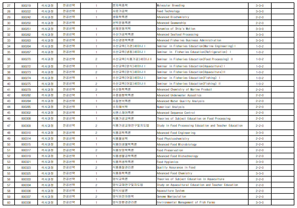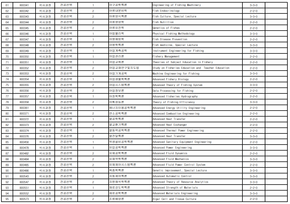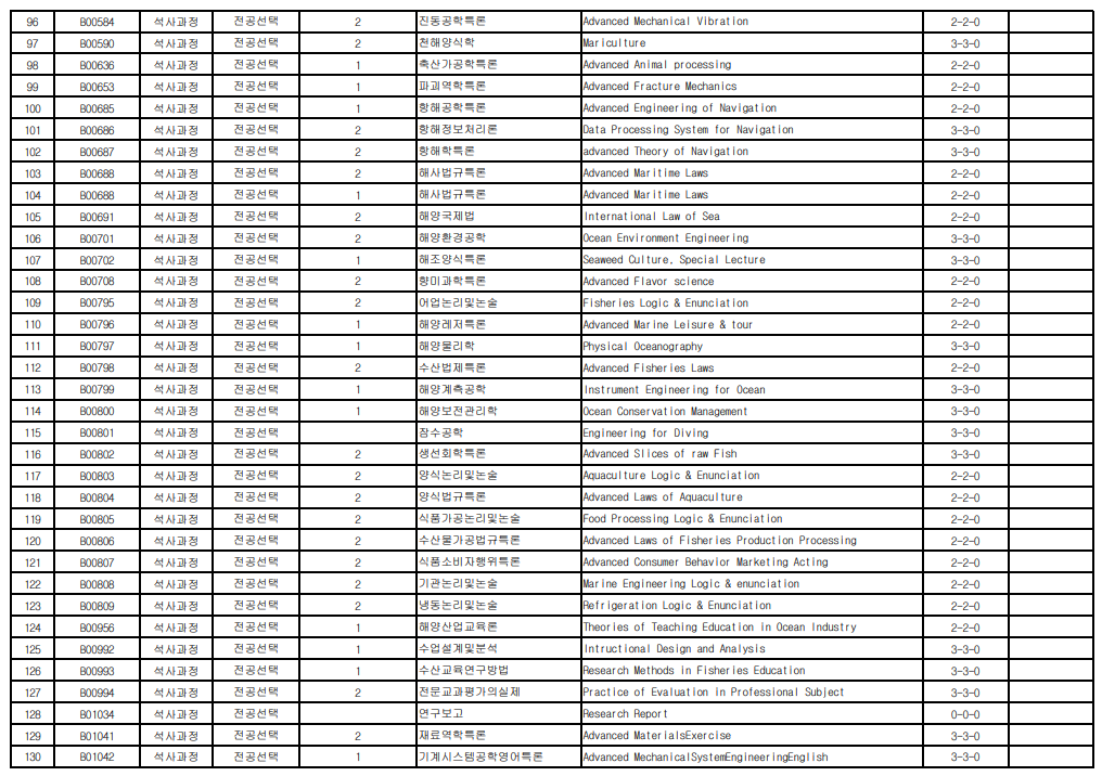 | 1 | B00108 | 석사과정 | 전공필수 |