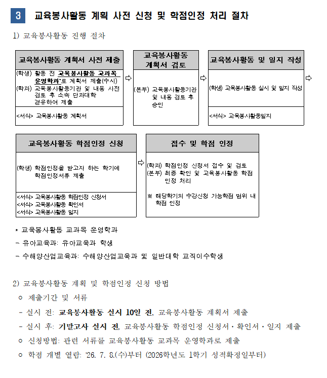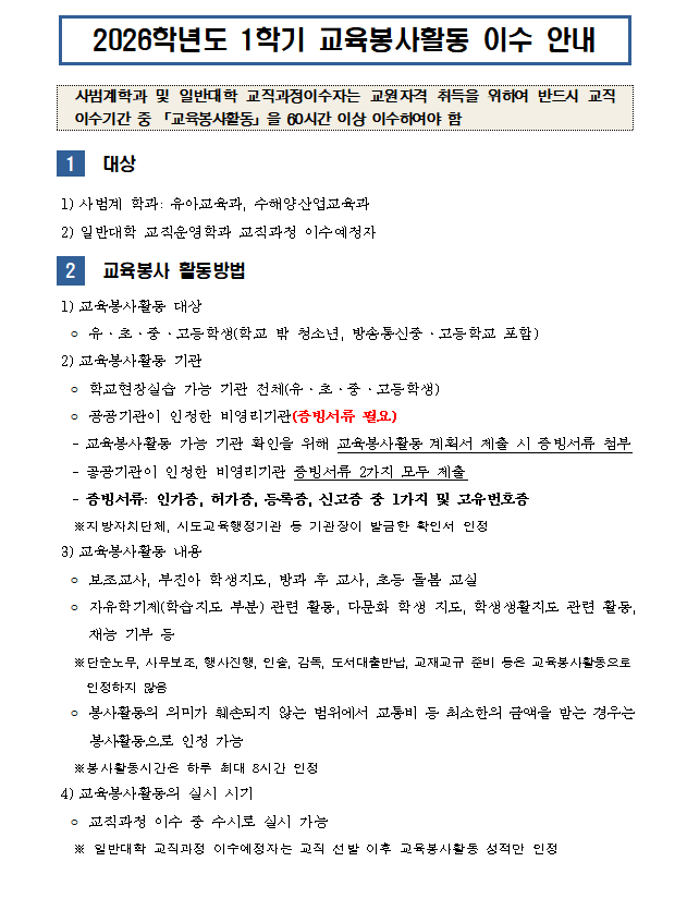 교원자격 취득을 위한 교육봉사활동 운영 안내
