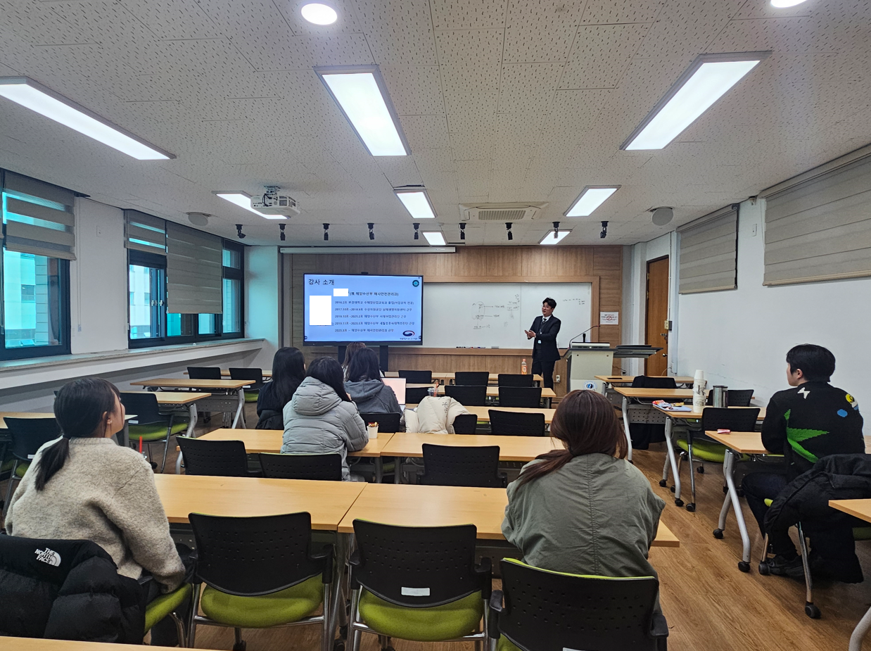 2025학년도 전문인재 초청 특강 - 일시: 2026. 1. 28.(수) 10:00 ~17:00 - 장소: 수업행동분석실 C21-9433 1교시 예비교사를 위한 현직 교사 임용 특강 2교시 진로 설계와 취업 준비 로드맵 3교시 수산해양 인재를 위한 공직 분야 특강